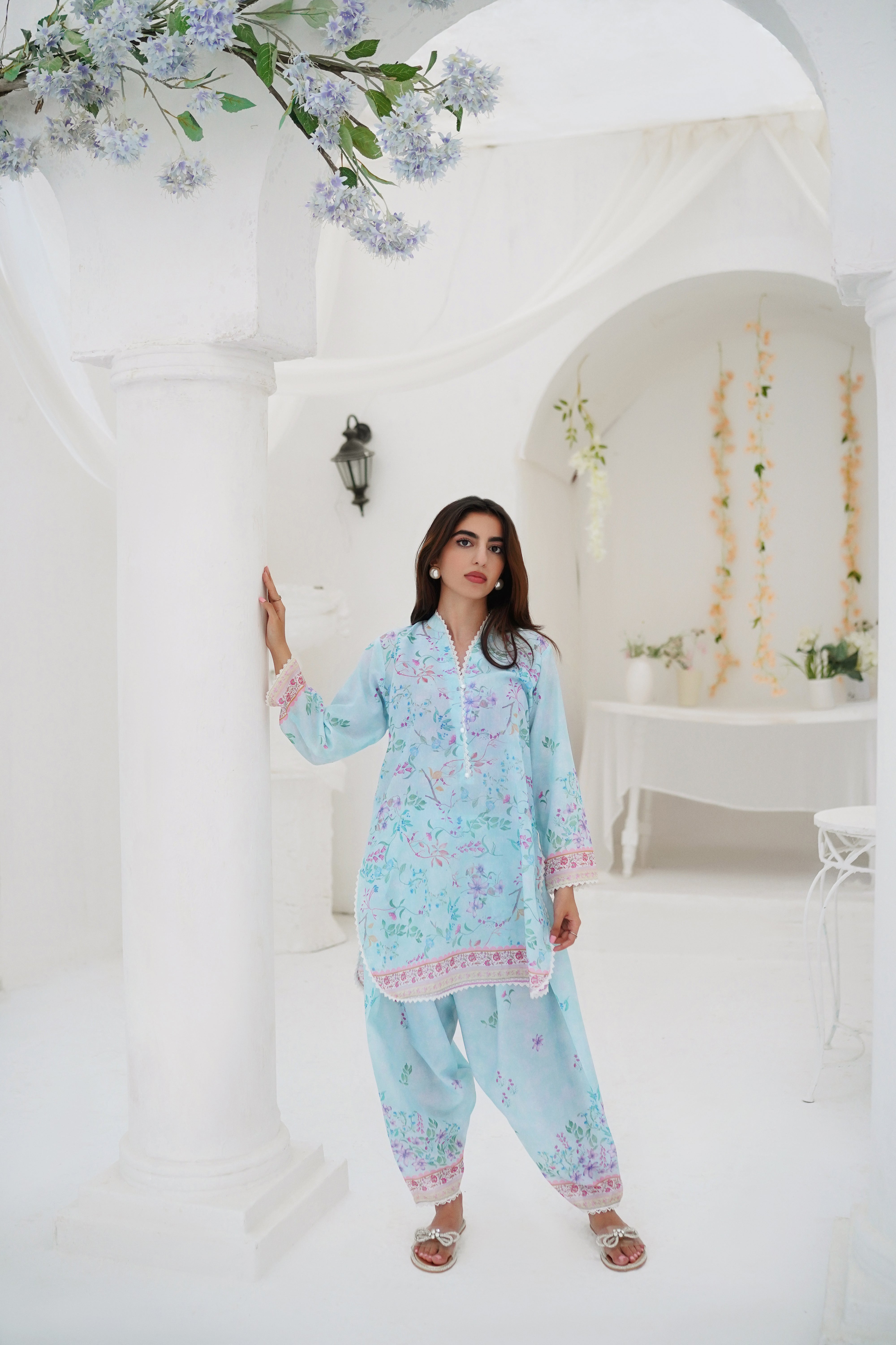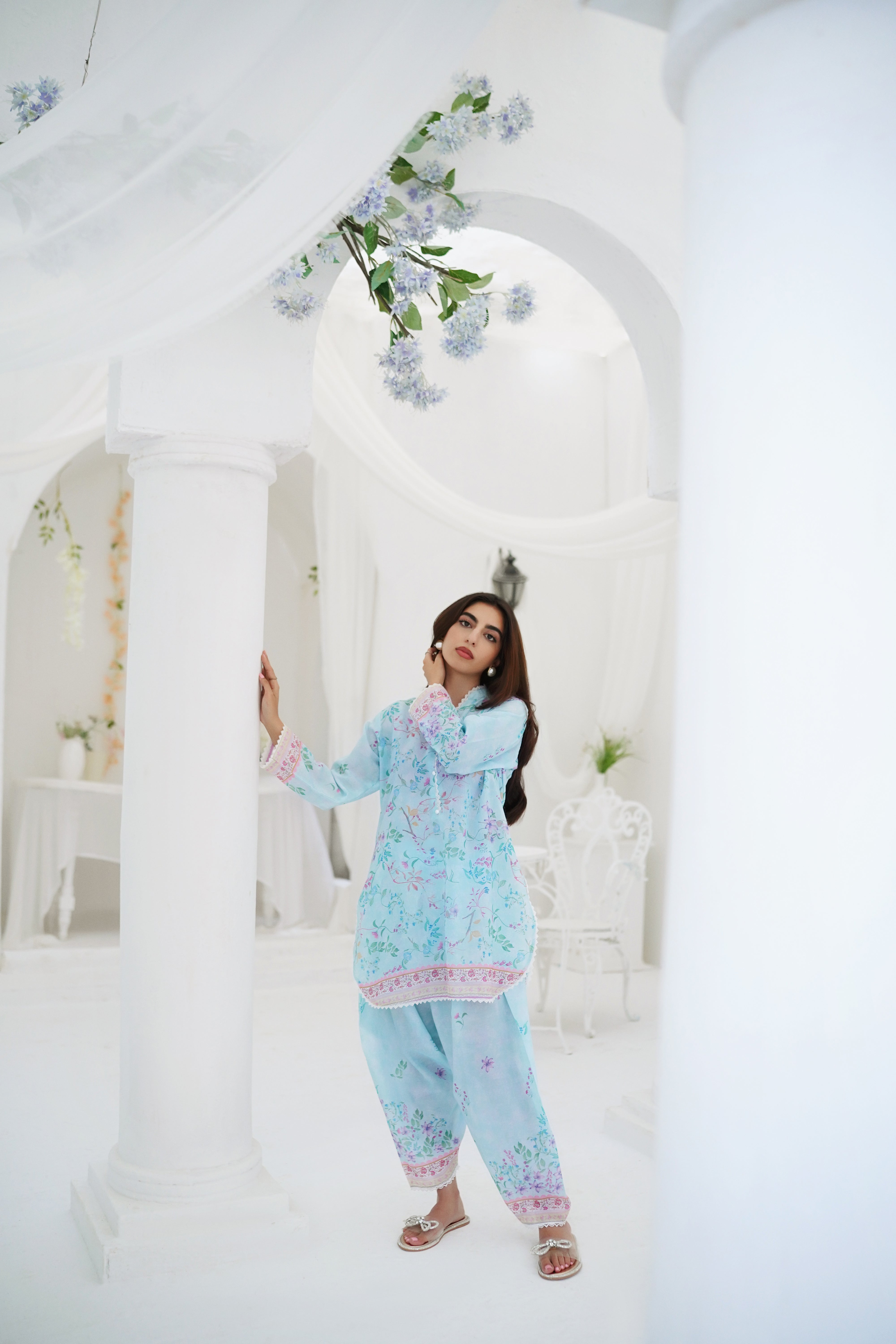 Embrace the beauty of nature with Flora, a two-piece stitched lawn suit that effortlessly combines elegance and serenity. Adorned with delicate floral motifs, this design showcases a harmonious blend of soft hues, evoking the calm and peaceful essence of a blooming garden. Crafted from breathable, premium lawn fabric, Flora offers a light, airy feel, perfect for warm days. Its intricate blossom patterns add a touch of grace to your everyday wear, making it an ideal choice for those who seek understated sophistication.