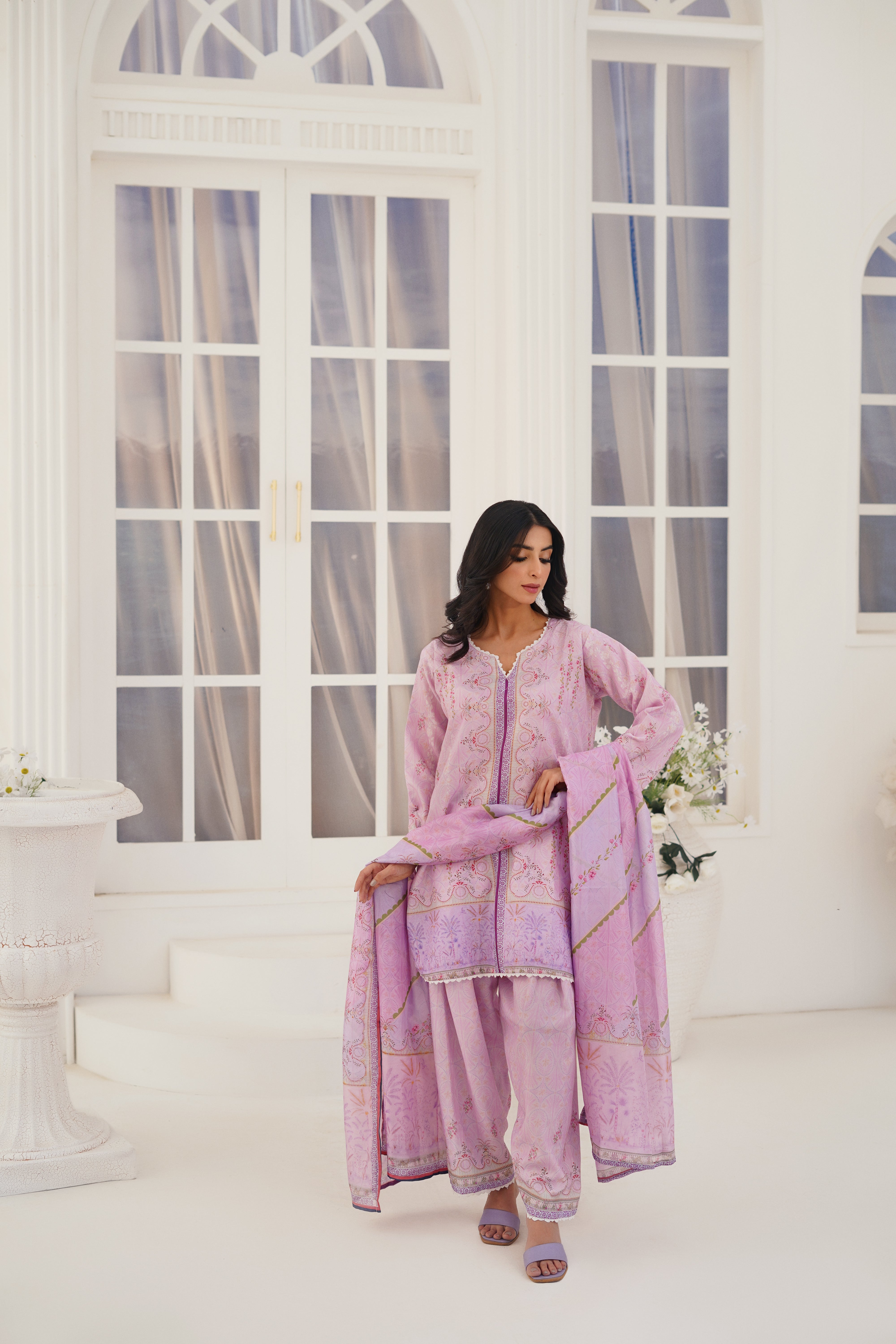 Elevate your winter wardrobe with “Lila”, an exquisite pashmina ensemble from our Noor Luxe Edit. Crafted with luxurious precision, this outfit exudes timeless elegance and unmatched comfort.