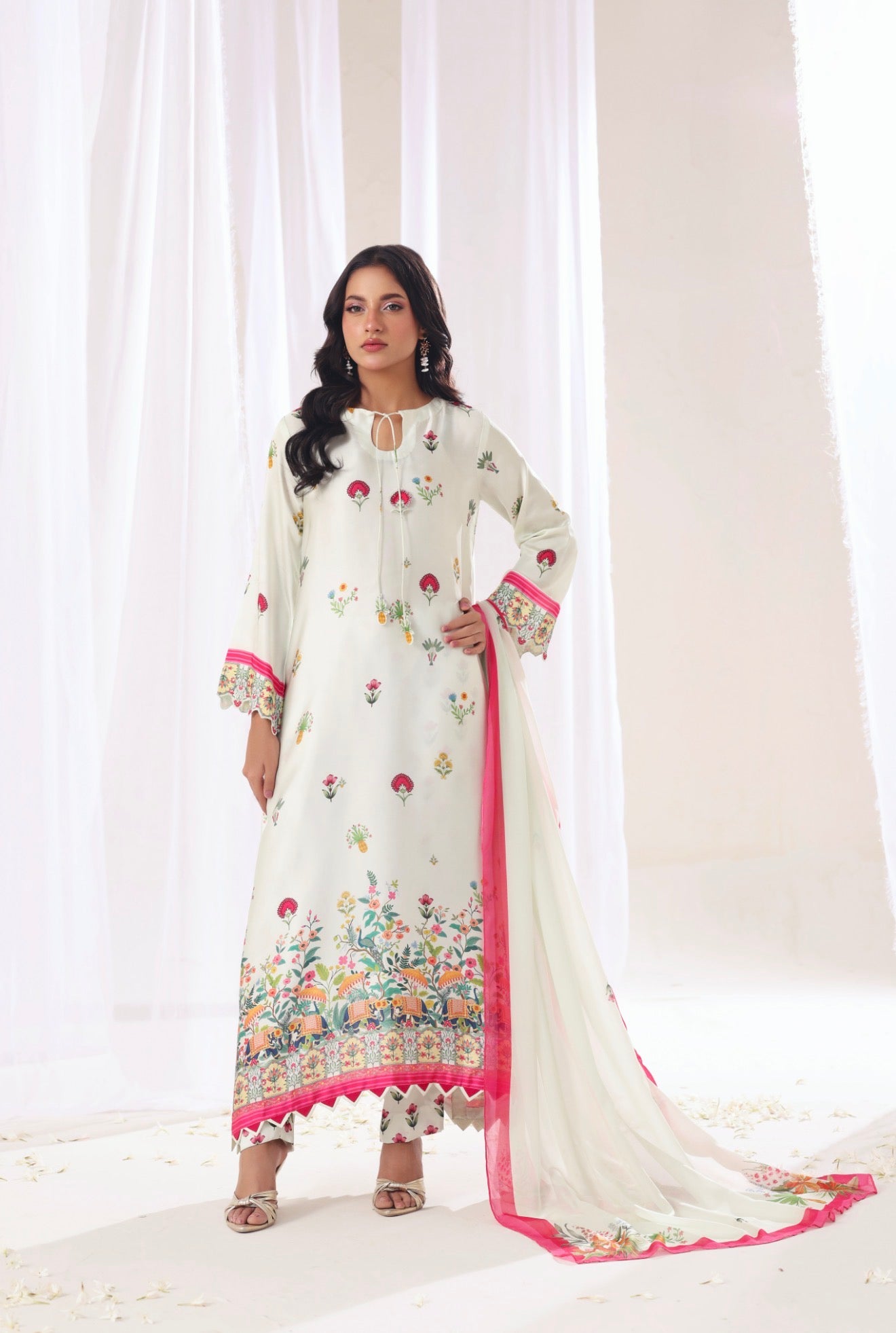 Delivery time: 2-3 weeksMaterial: In-house Charmeuse Silk. Dubatta: Apple silkModel is wearing Size smallNoor is...