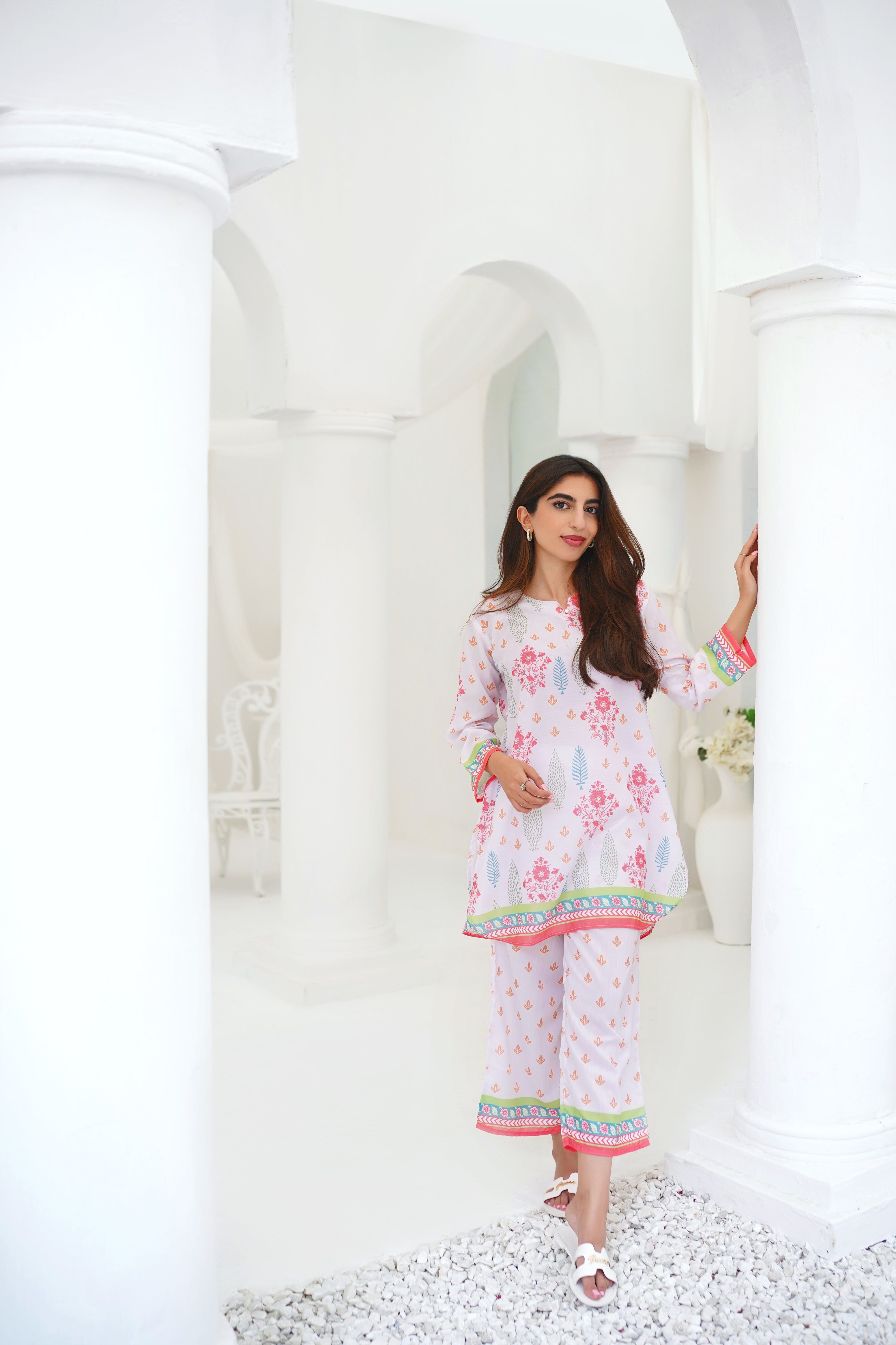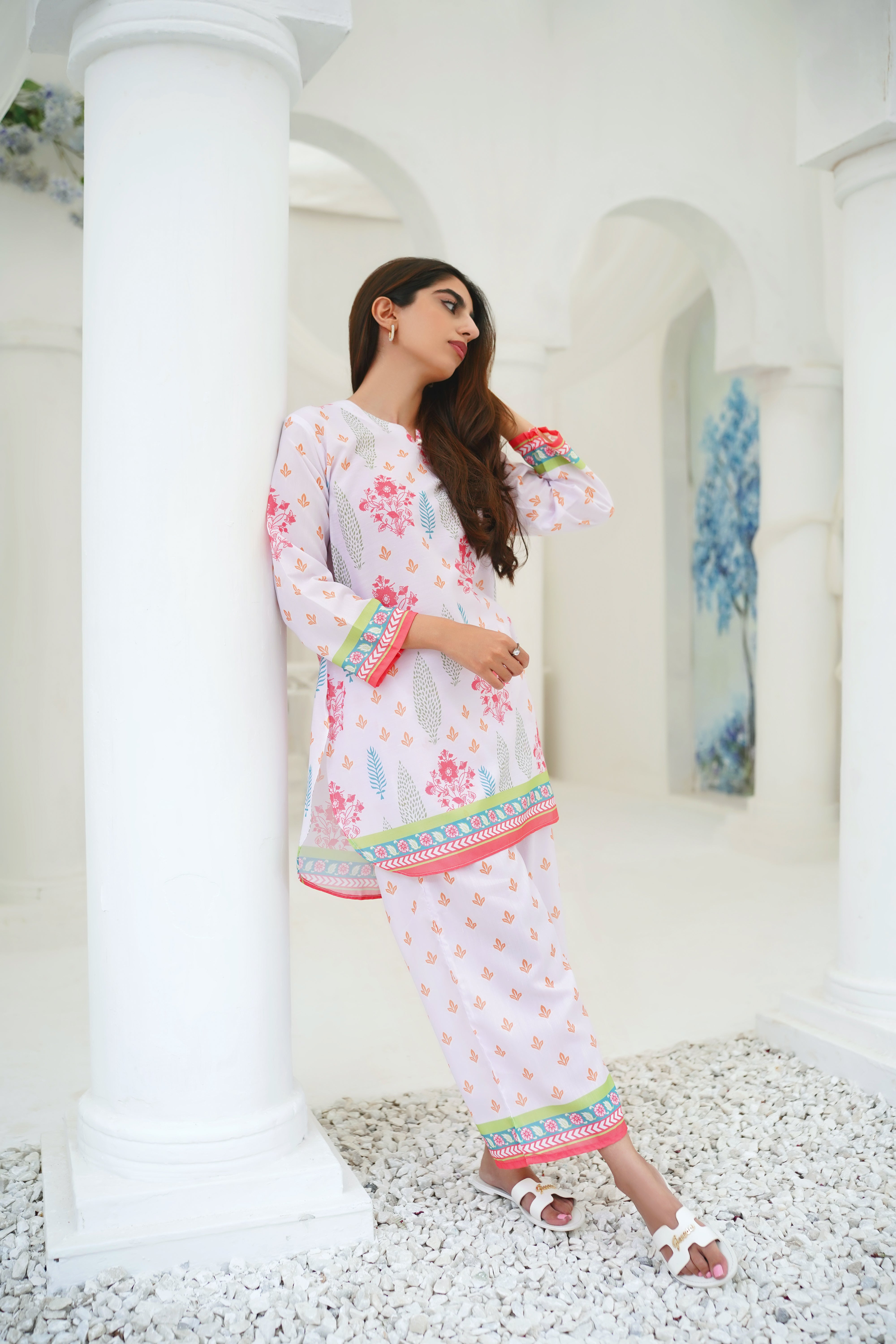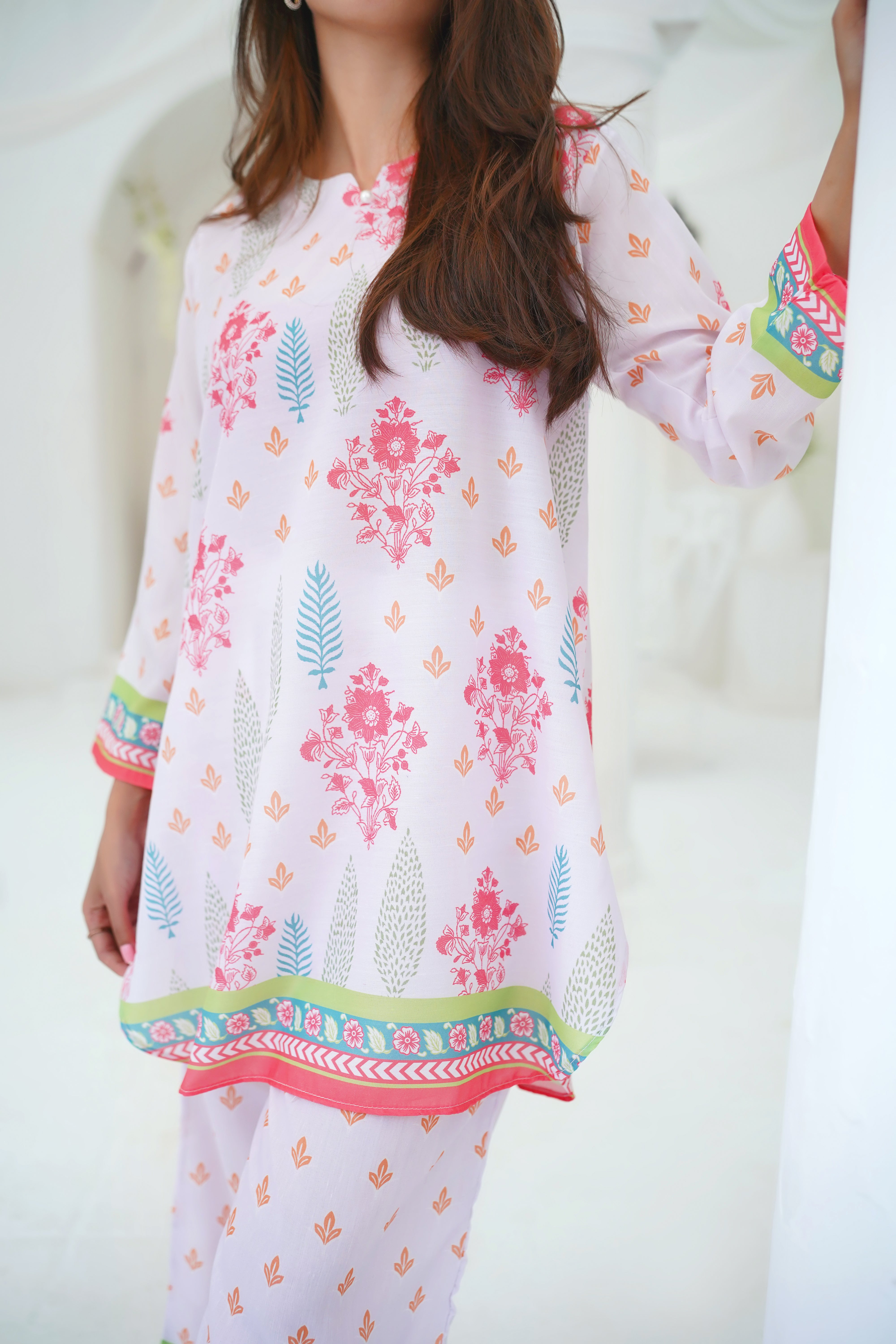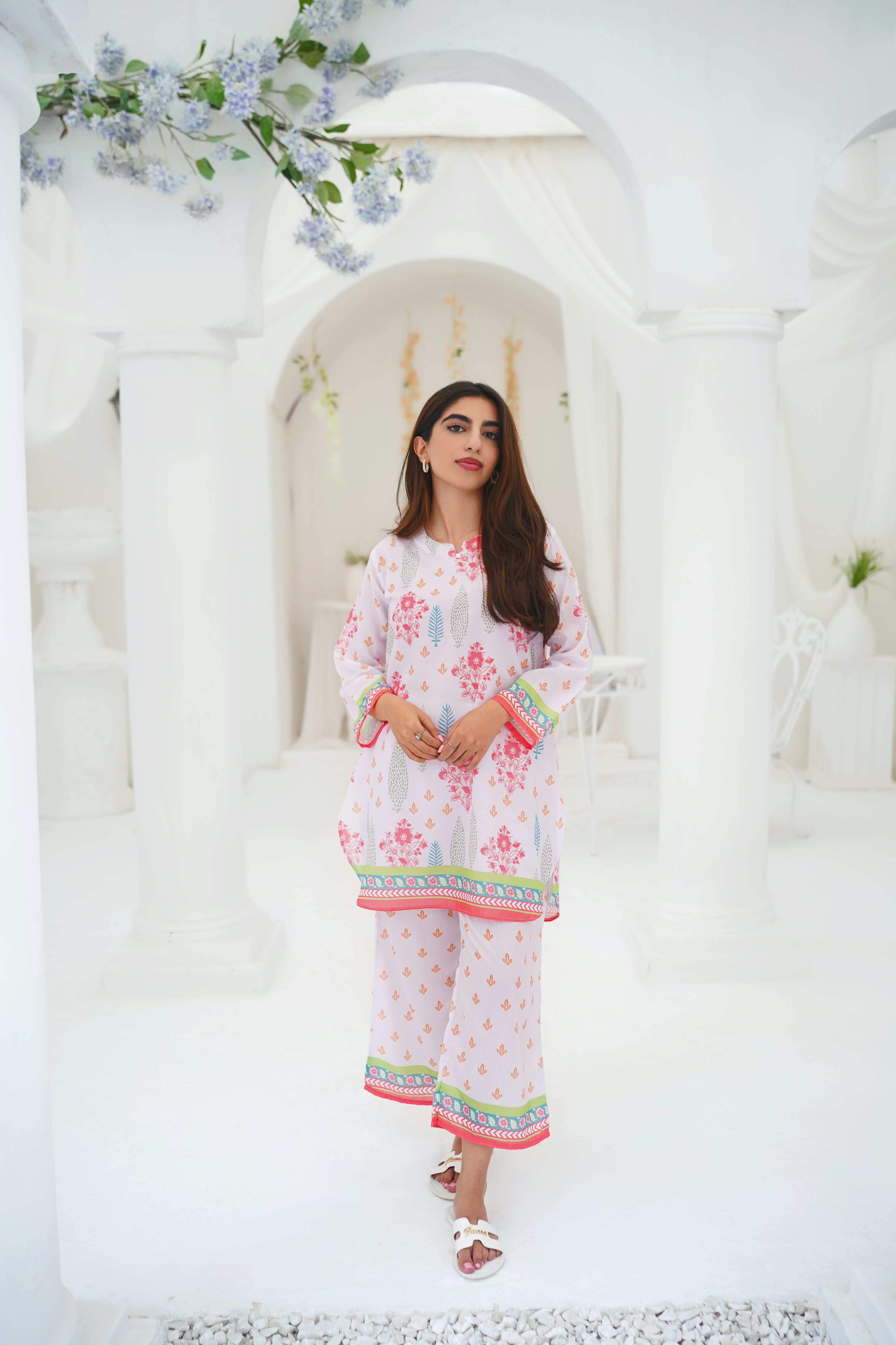 Orchard, a two-piece stitched lawn suit designed to bring a breath of fresh air into your wardrobe. This light and breezy ensemble features a delicate floral print, capturing the essence of serene orchards in full bloom. The soft and airy lawn fabric offers unmatched comfort, making it perfect for warm weather. Ideal for casual outings or relaxed gatherings, "Orchard" brings together nature-inspired elegance and effortless style