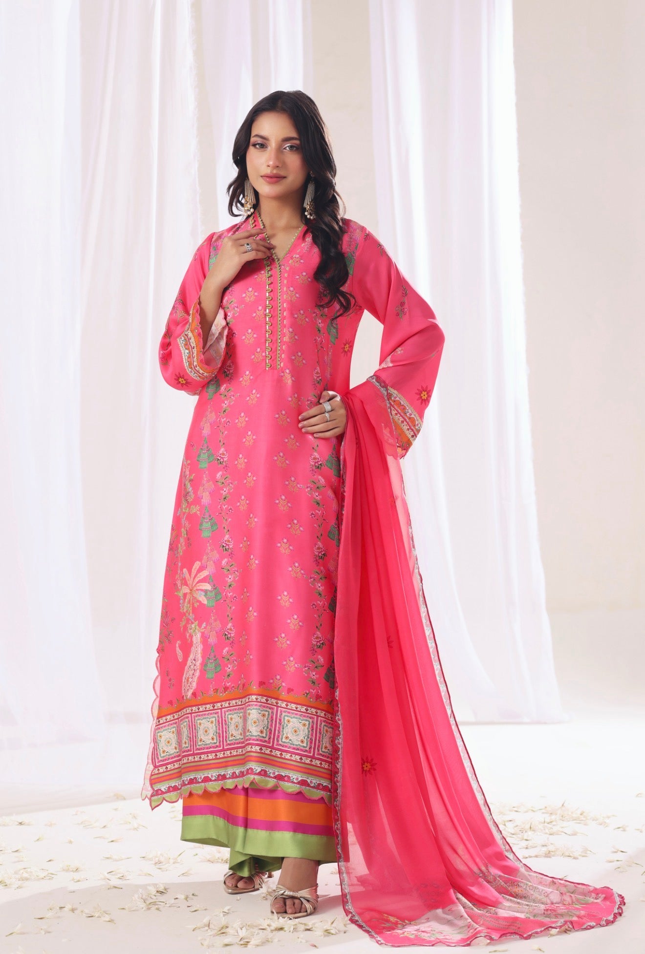 Delivery time: 2-3 weeksMaterial: In-house Charmeuse Silk. Dubatta: Apple silkModel is wearing Size smallRang is...