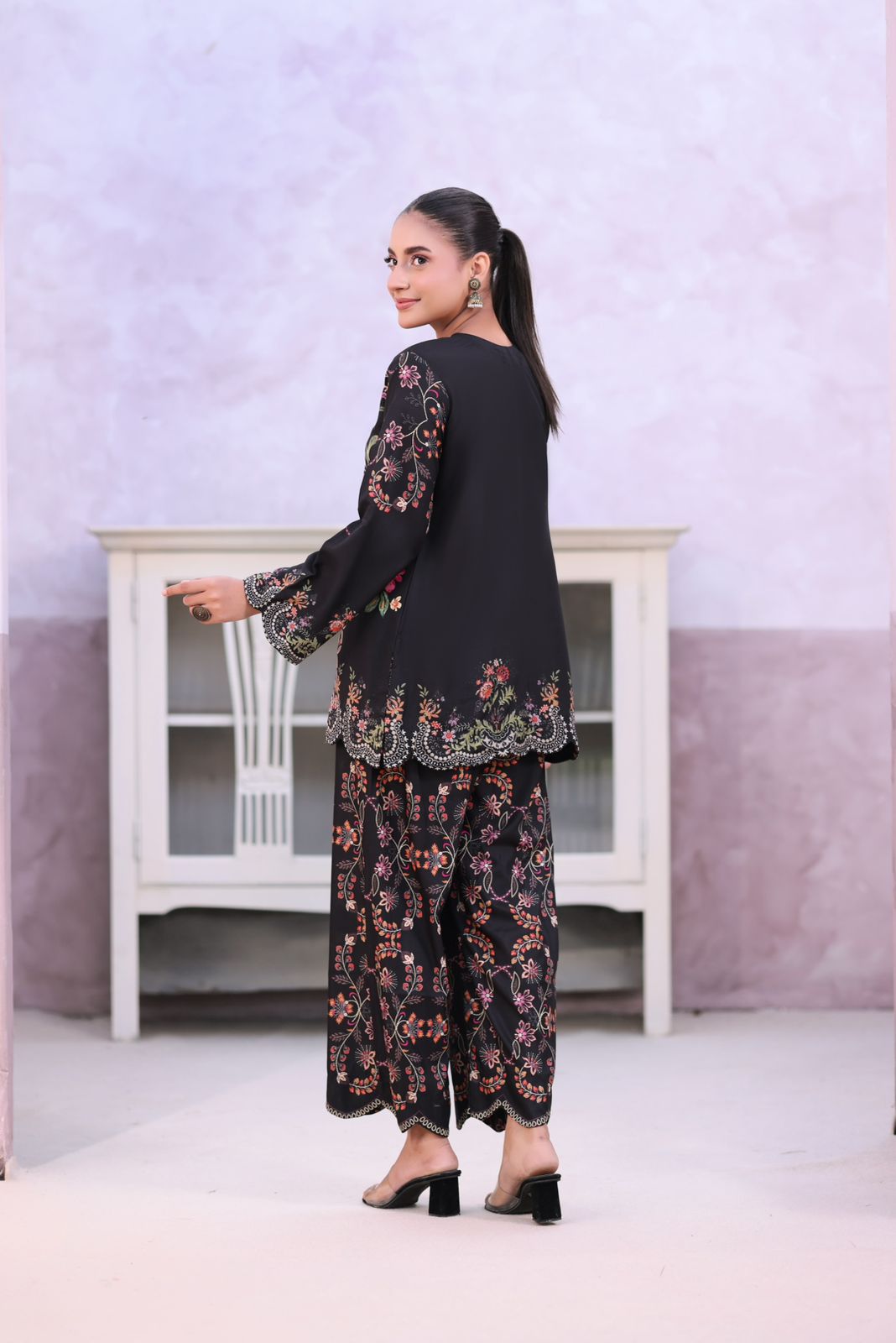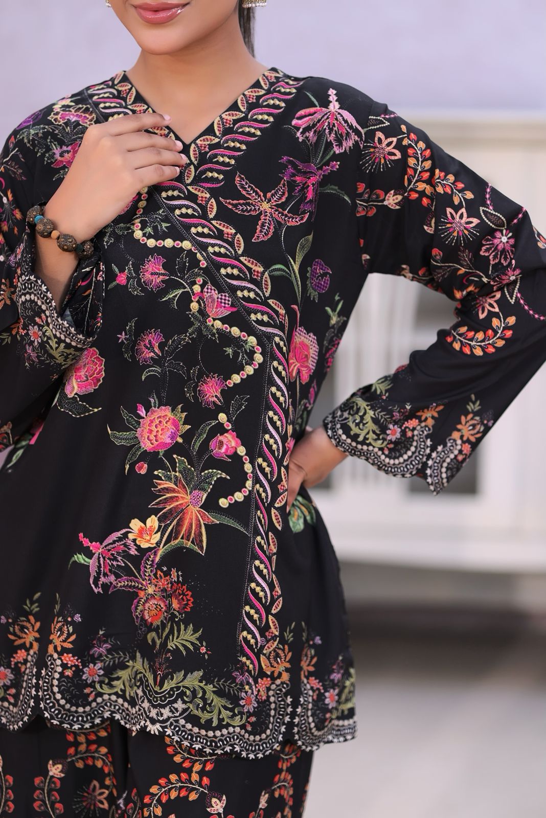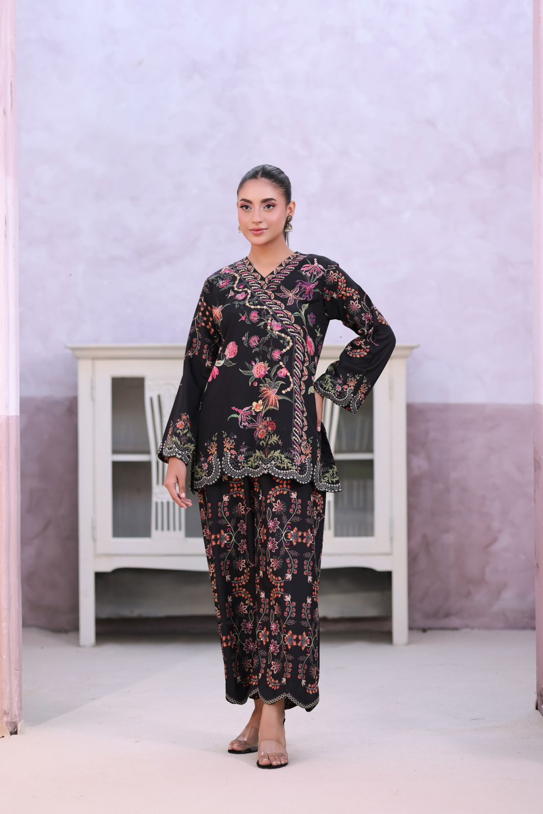 This elegant 2-piece set comes in a classic black base enhanced with soft pink...